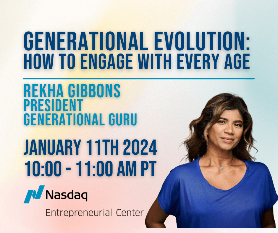 Rekha was pumped to be a keynote speaker for Nasdaq Entrepreneurial Center. She talks about how technology has shaped each generation, and how Entrepreneurs can communicate with every generation.